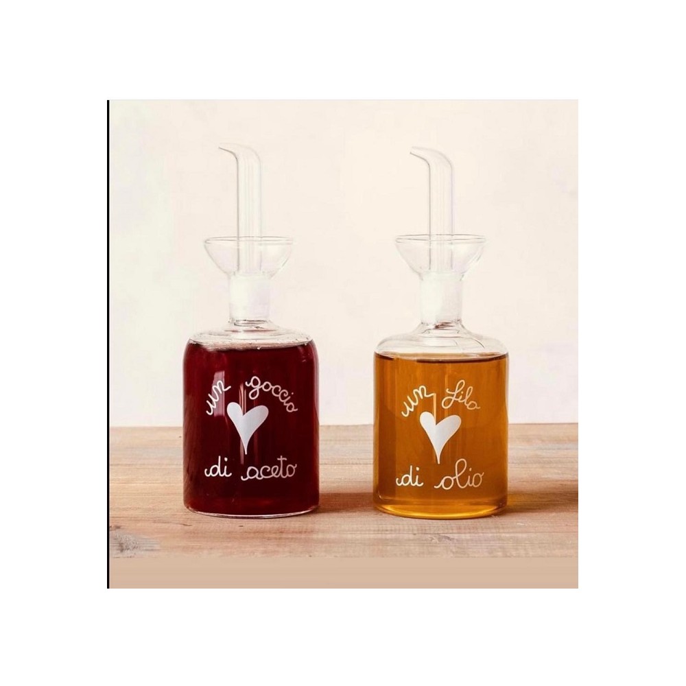 set olio e aceto realizzate in vetro borosilicato, materiale leggerissimo ma molto resistente. la forma e il decoro si prestano per le cucine piu' moderne ma anche a quelle classiche, ideale da regalare o regalarti per rendere speciale la tua tavola ogni giorno. Puoi abbinarli al set sale e pepe della stessa linea. Lavabili in lavastoviglie max 50°, non utilizzare abrasivi o detersivi aggressivi che possono dannegiare il prodotto.