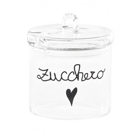 zuccheriera realizzata in vetro borosilicato, materiale molto leggero ma resistente. Perfetta per servire in tavola lo zucchero in modo pratico ed elegante. Il coperchio ha l'incavo per permettere di inserire il cucchiaino ( non incluso). Lavabile in lavastoviglie max 50°, non usare abrasivi o detersivi aggressivi che possono danneggiare il prodotto.