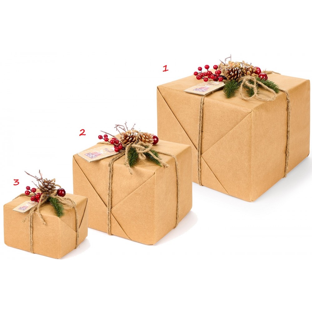 pacchi regalo in cartone per decorare la casa, perfetti da mettere sotto l'albero di Natale