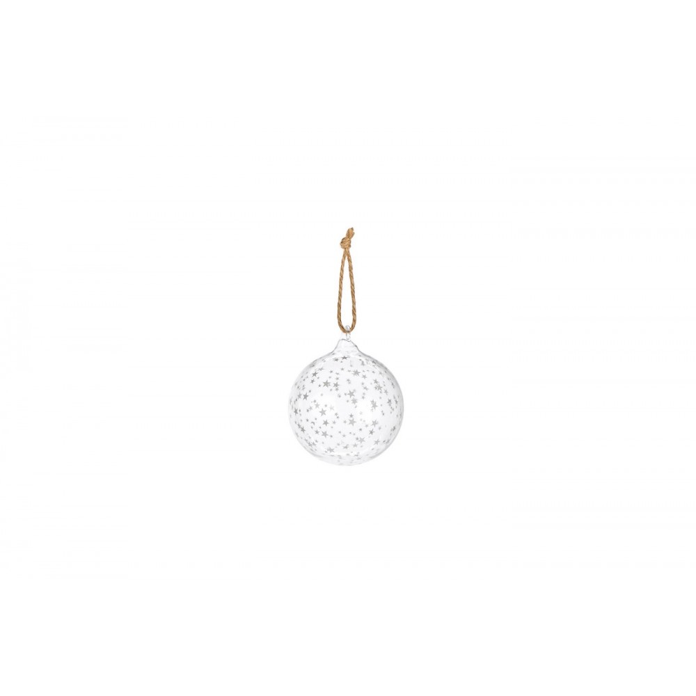 addobbo sfera in vetro borosilicato, materiale trasparente e resistente. Decoro stelle