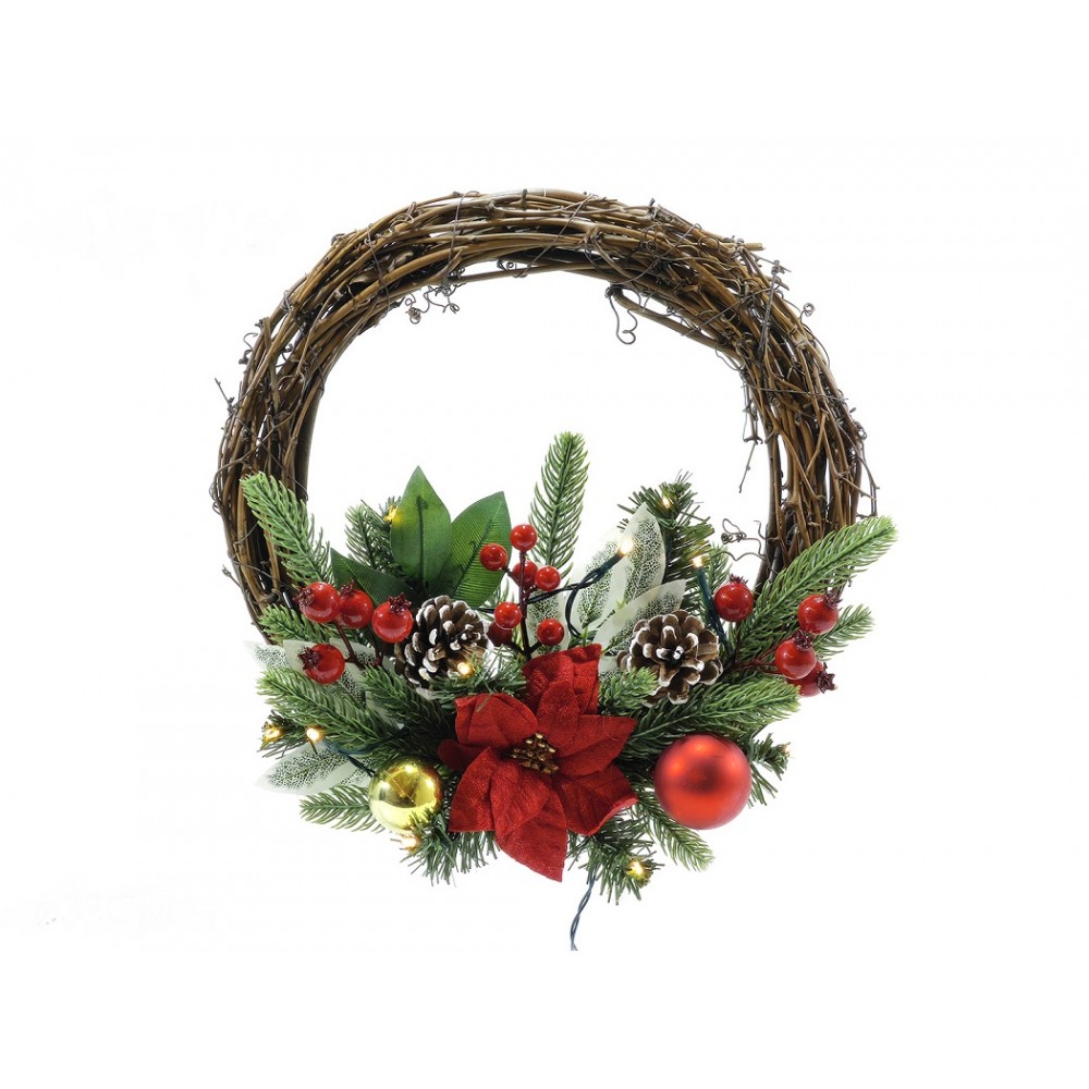 questa ghirlanda gia' decorata e con luci e' perfetta da appendere alla porta o sulle finestre per creare la giusta atmosfera magica del Natale.