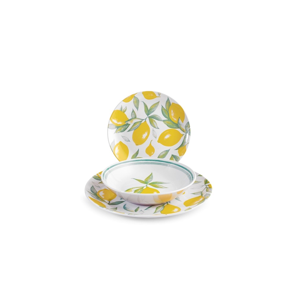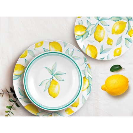 Servizio piatti da 18 pezzi in porcellana decorata forma coupe.