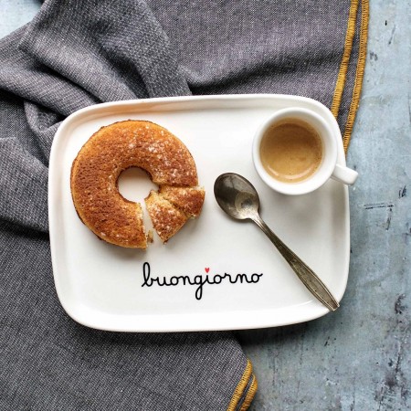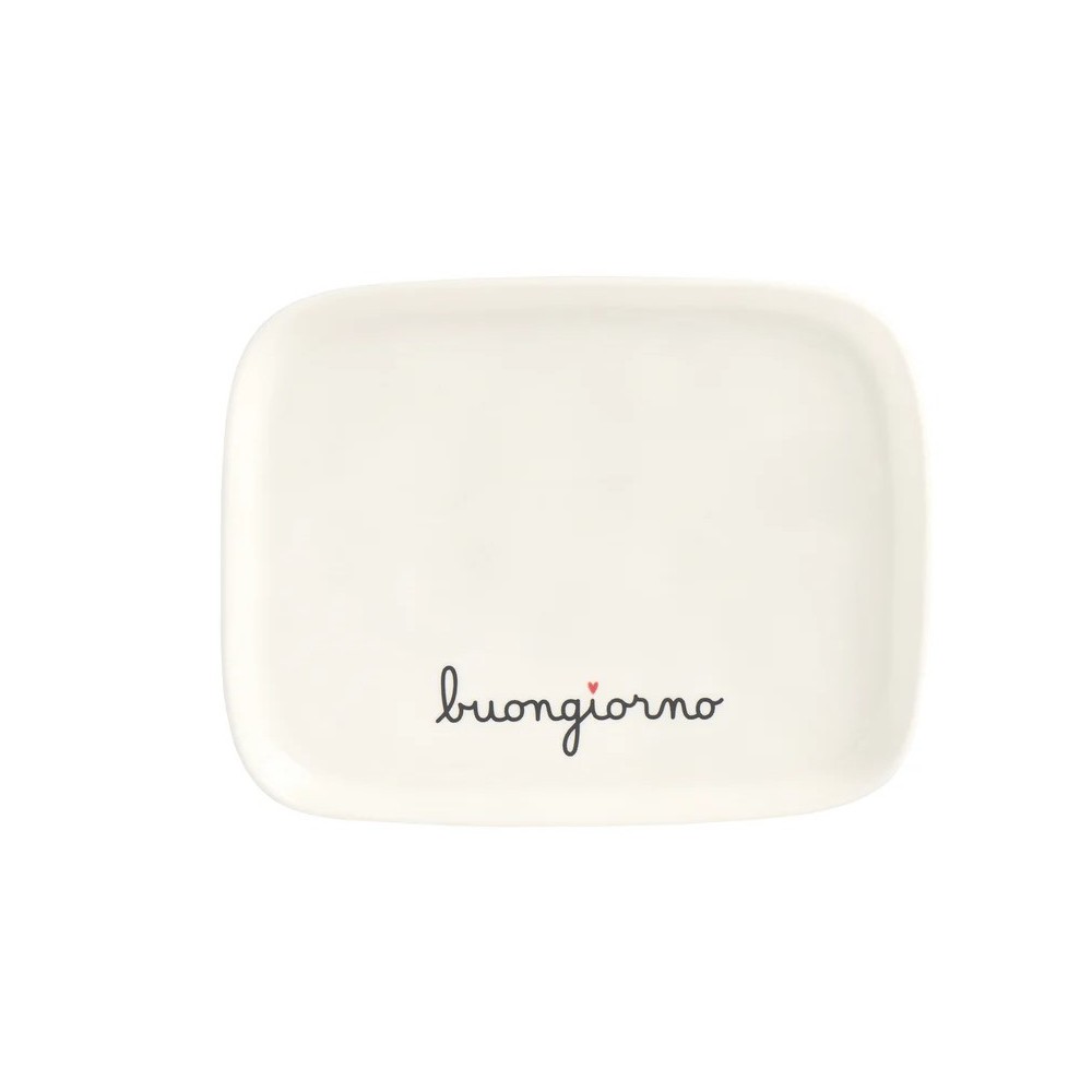 Piatto rettangolare in gres decoro Buongiorno 20x15.5 cm
