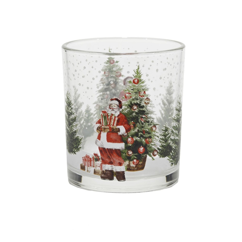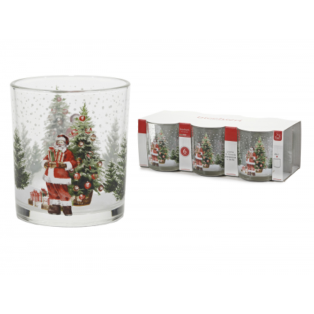 Confezione da 3 bicchieri in vetro con decoro Babbo Natale