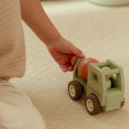 include un operaio edile in legno, rendendo il veicolo Little Dutch perfetto per divertenti giochi di costruzione.
