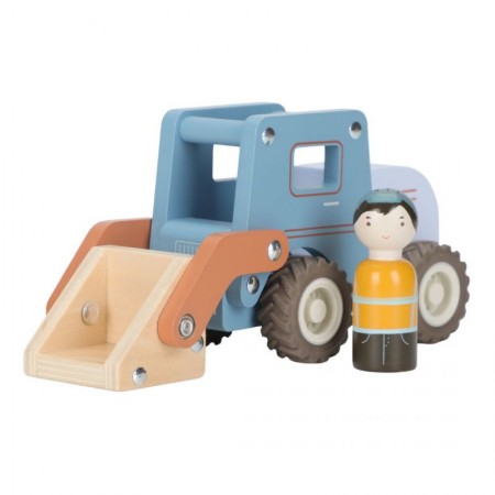 La robusta ruspa scorre senza intoppi grazie alle ruote in gomma ed è accompagnata da un operaio edile in legno. Combina questa ruspa in legno con gli altri veicoli da costruzione per ancora più avventure in cantiere!